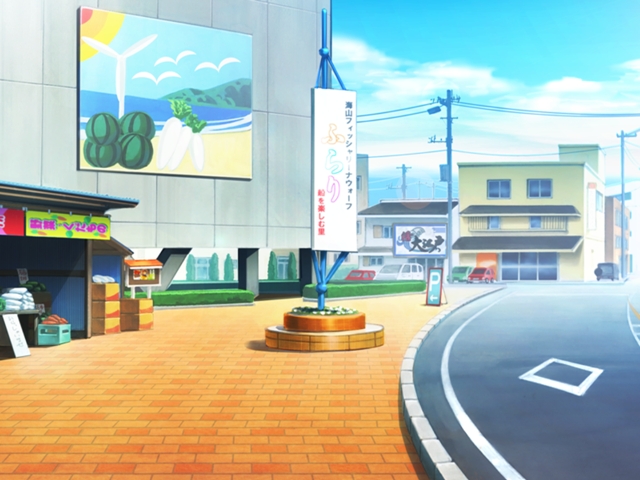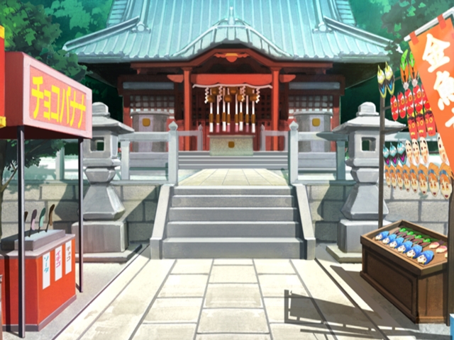 華房組門前、花房学園校門、同校庭、同屋上、商店街、どるちぇ、アリスの畑、神社